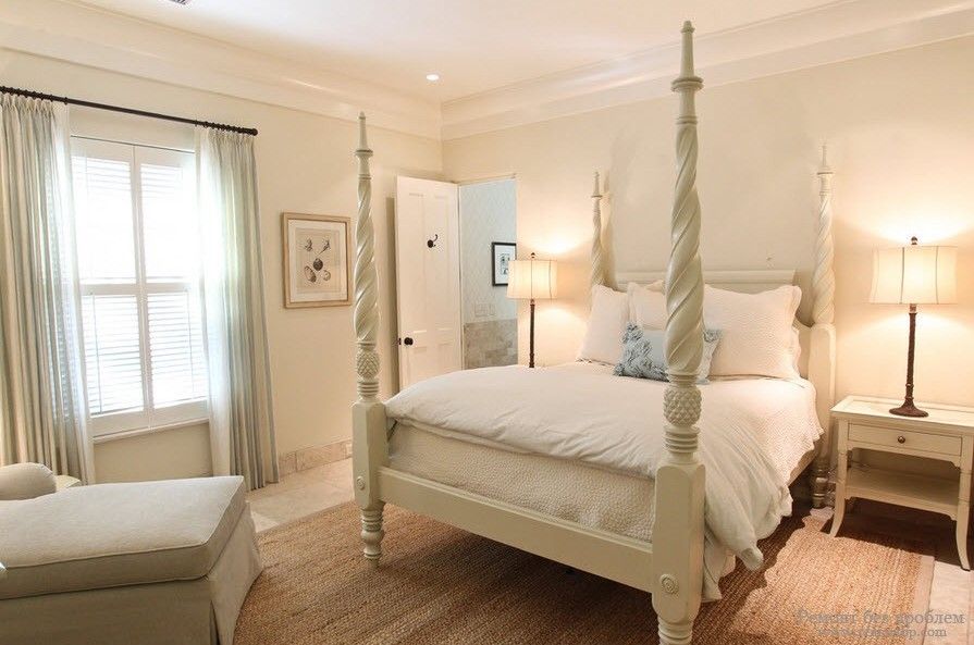 Психологами подмечено, что оптимальными тонами для спальни являются пастельные (цвет слоновой кости, бежевый или молочно-белой ванили). Однако, если комната с избытком солнечного света, то лучше всего будет использовать холодные тона.