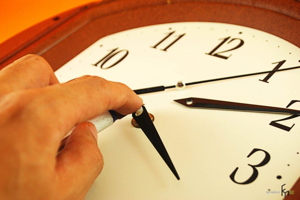 Закройте обложку с просверленным ранее отверстием так, чтобы стержень смог свободно пройти в него, и закрепите часовые стрелки: