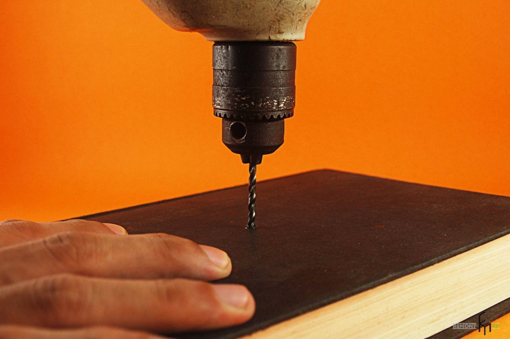 Просверлите отверстие только в центре переплета, не касаясь всех остальных страниц книги: