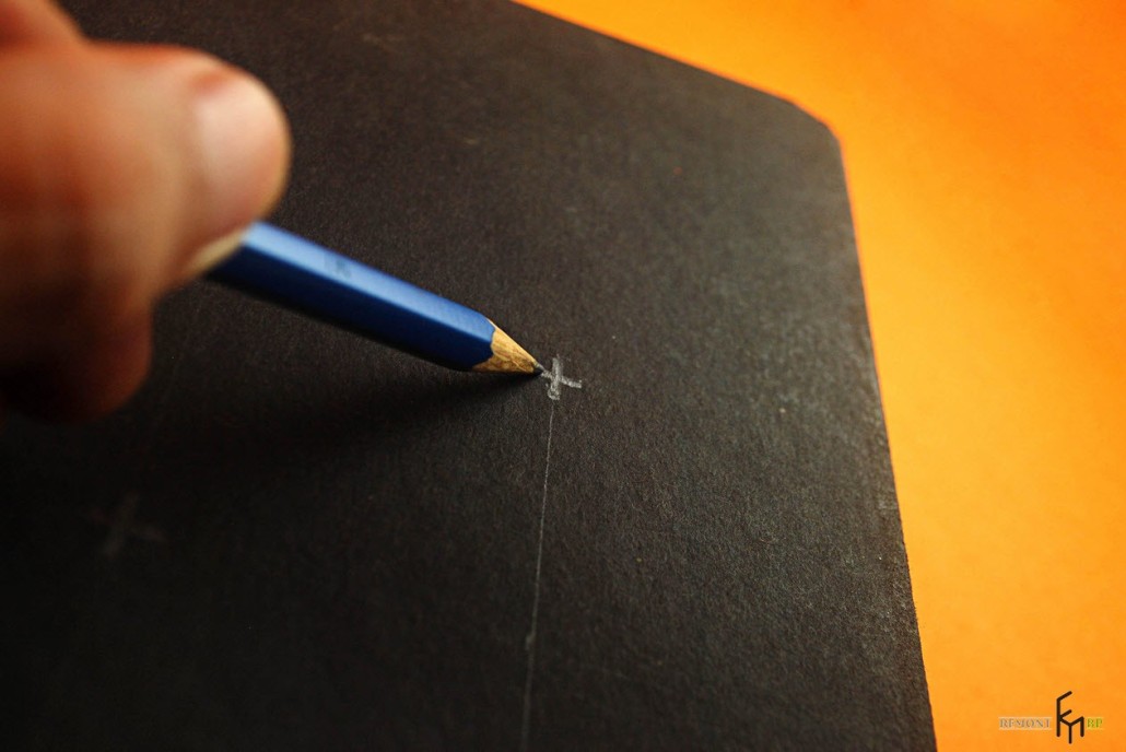 Сделайте карандашом разметку на форзаце, соответствующую размерам устройства: