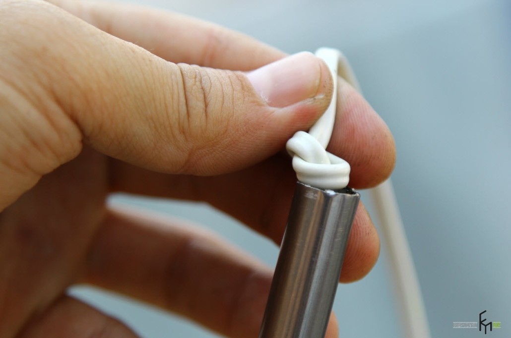 Сделайте узел из провода на конце трубки. Это необходимо для ее фиксации.