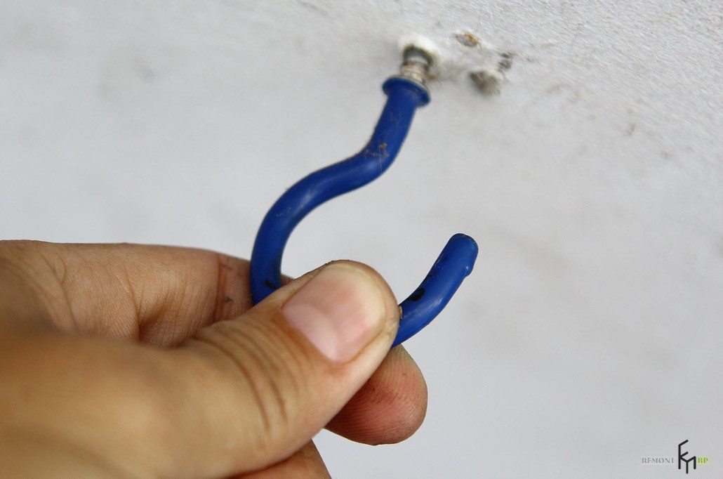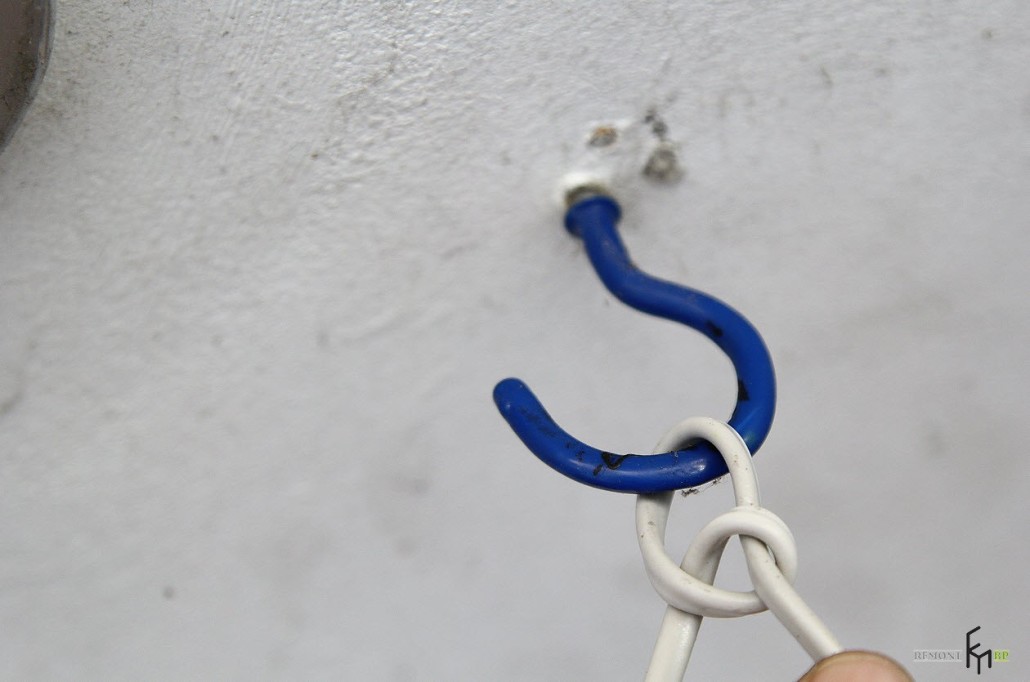 Закрепите провод на крючке. Подключите провод к источнику питания.