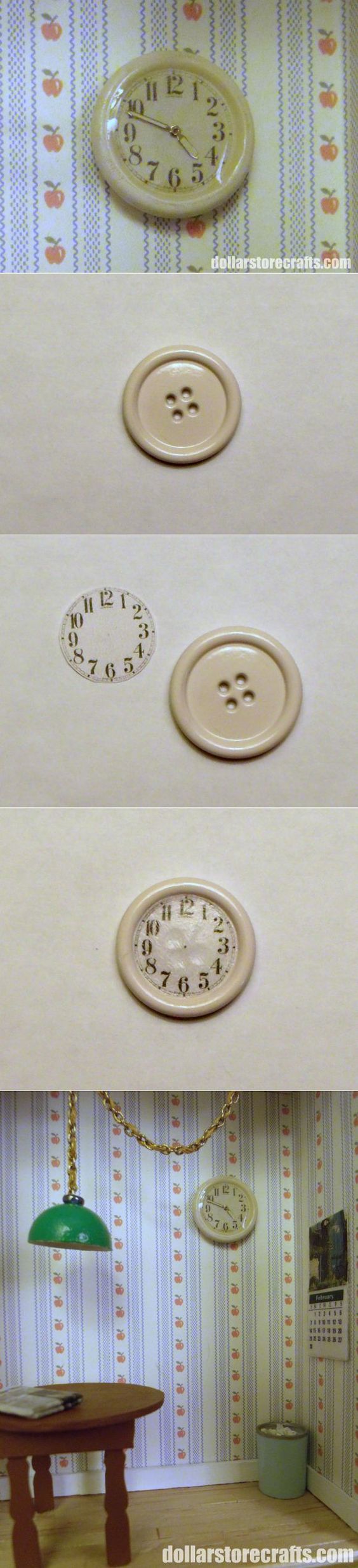 Не забудем о деталях. Настенные мини-часы из крупной пуговицы – прекрасное дополнение к уютному кукольному домику.