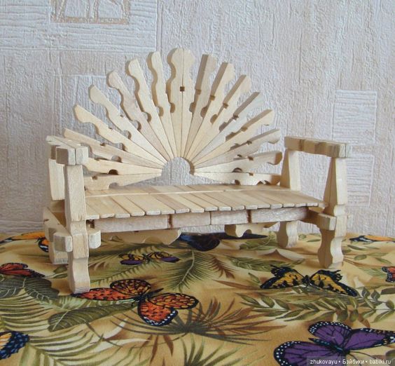 Удивительно, но даже обычные деревянные прищепки могут служить роскошным материалом для создания, например, вот такой кукольной чудо-скамейки!