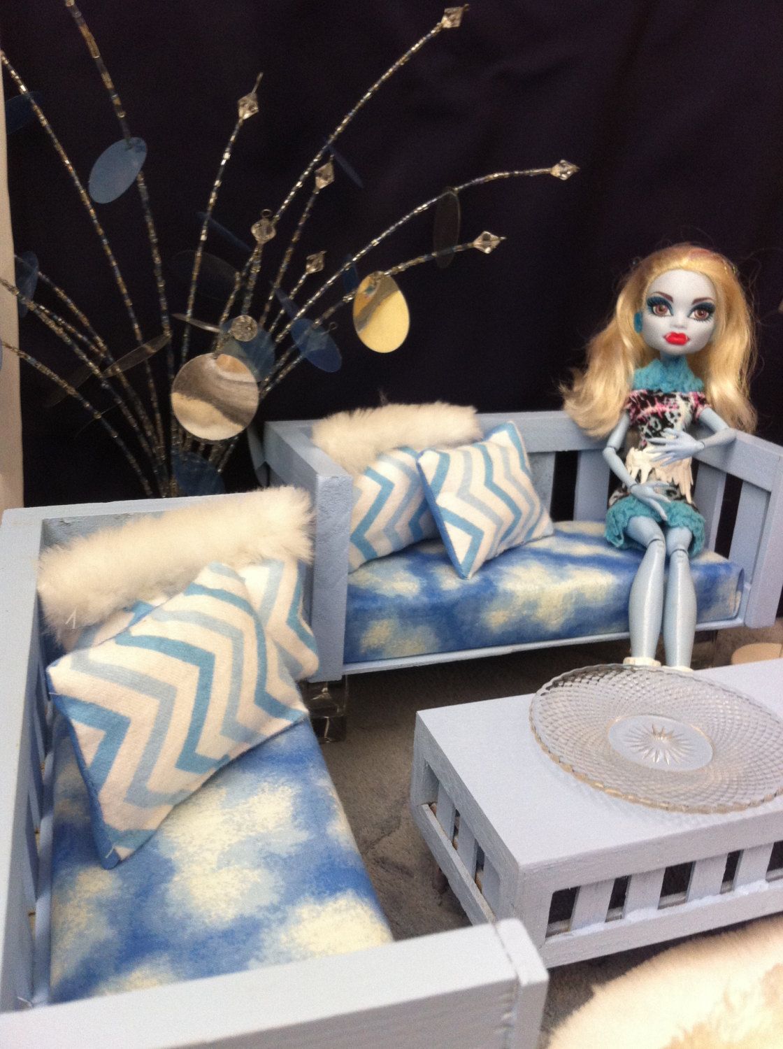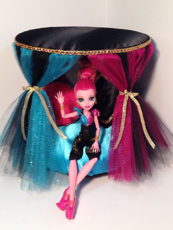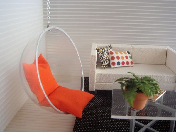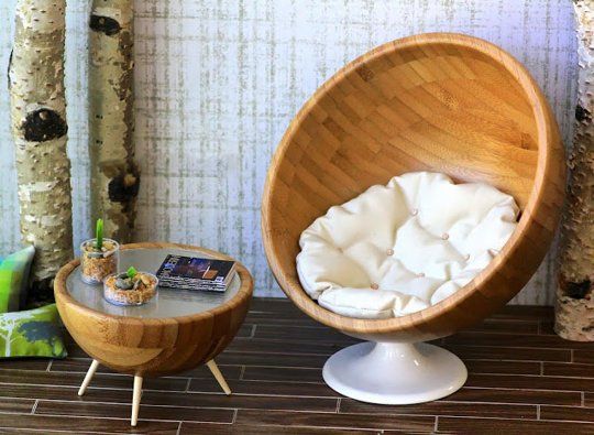 Мебель для куклы может быть еще и очень стильной. Как не счет кресла-мешка или очаровательных пуфиков из обычных пластиковых крышечек, обшитых тканью с мягким наполнением?
