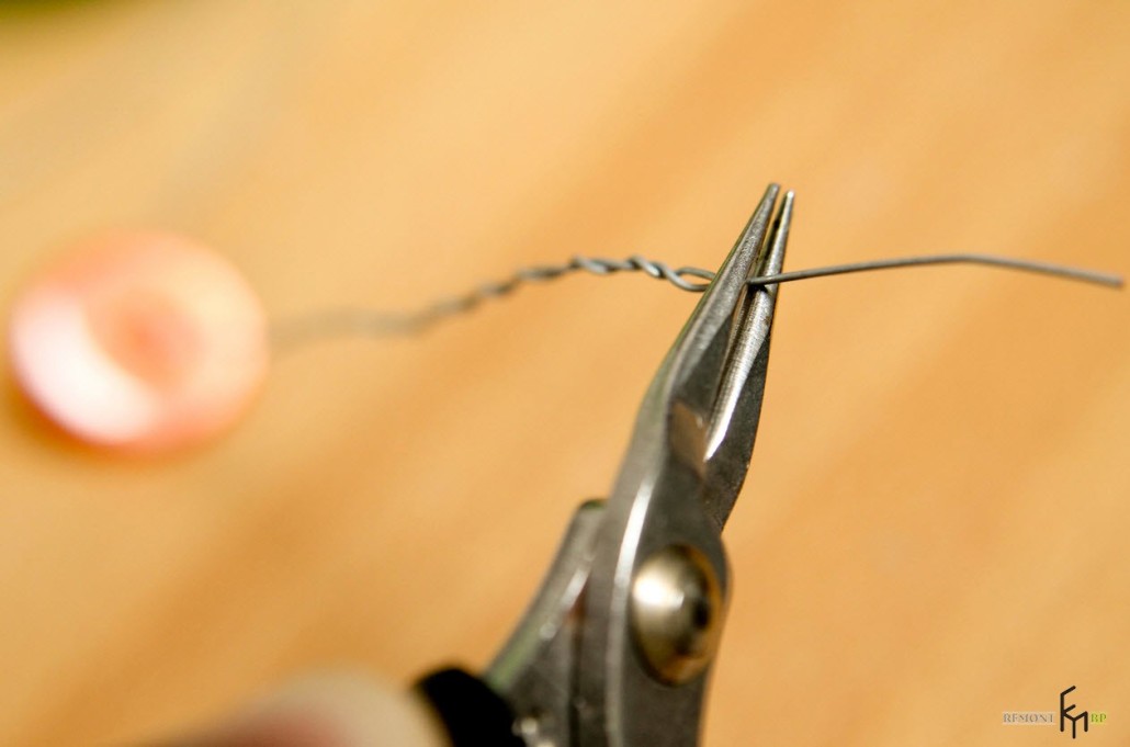 - Отмерьте нужную длину проволоки для формирования стебля. Отрежьте плоскогубцами лишнюю часть проволоки: