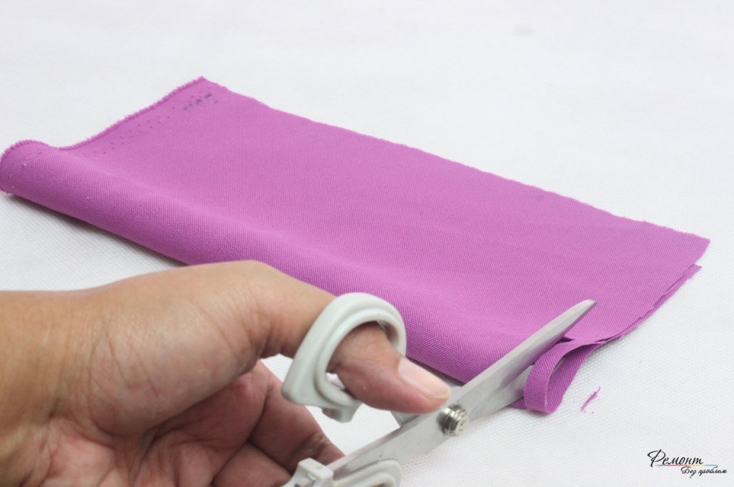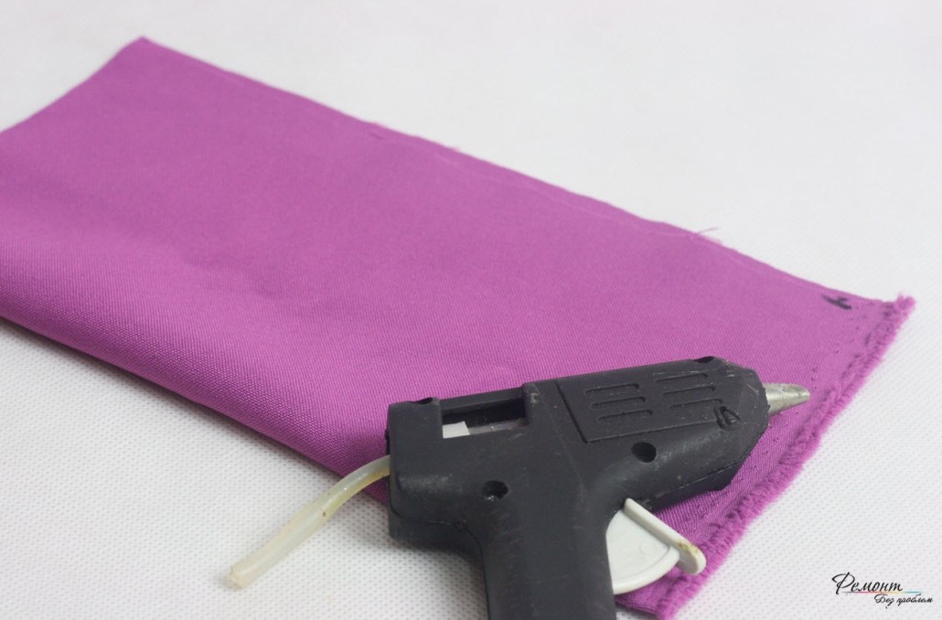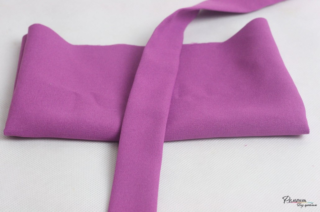 2. Расположите полоску ткани в центре пенала. Запас ткани с каждой из сторон должен быть достаточным для завязывания бантика.