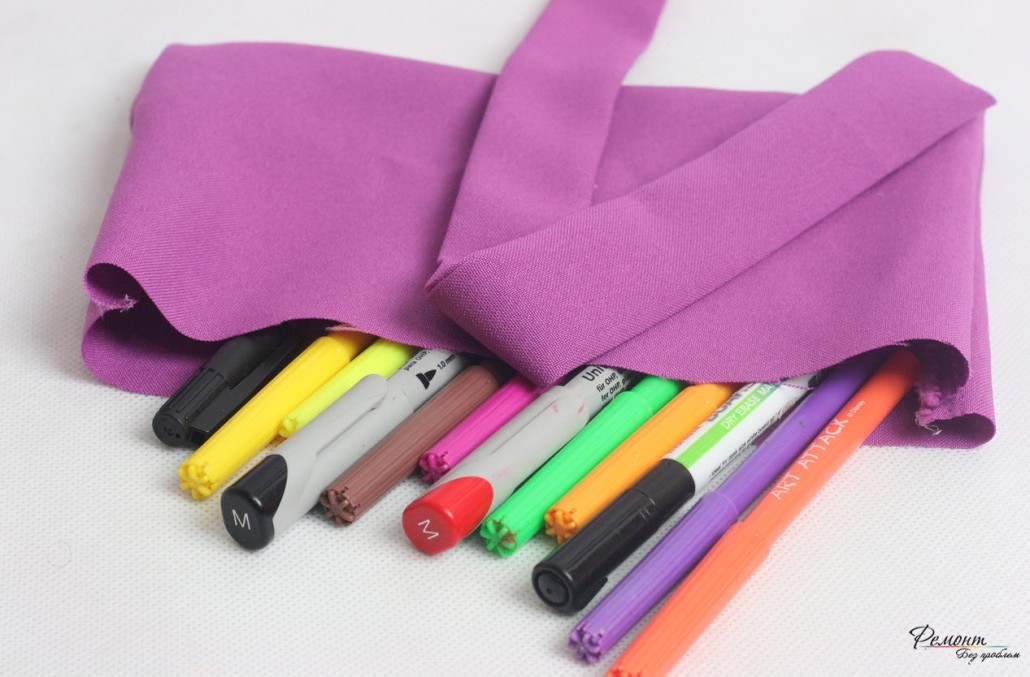Пенал для хранения карандашей и ручек для школы или для дома очень просто сделать своими руками. Изготовить очень милый оригинальный пенал в виде банта без шитья можно всего за несколько минут.