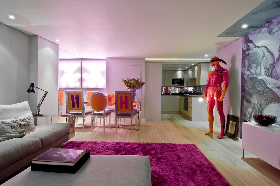 Однако есть еще одна хитрость – использование в интерьер белого фона (стены, потолок и др.). К нему подойдут все цвета радуги. Причем будут контрастно выделяться на белом фоне.