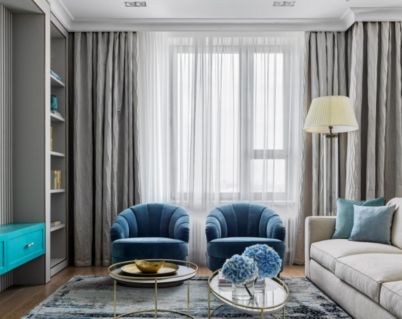 Выдержать единство в интерьере помогут идентичные узоры. Например, одинаковые принты на акцентной стене гостиной и на обивке стульев или на шторах и на подушках, что, кстати говоря, более выполнимо и доступно.