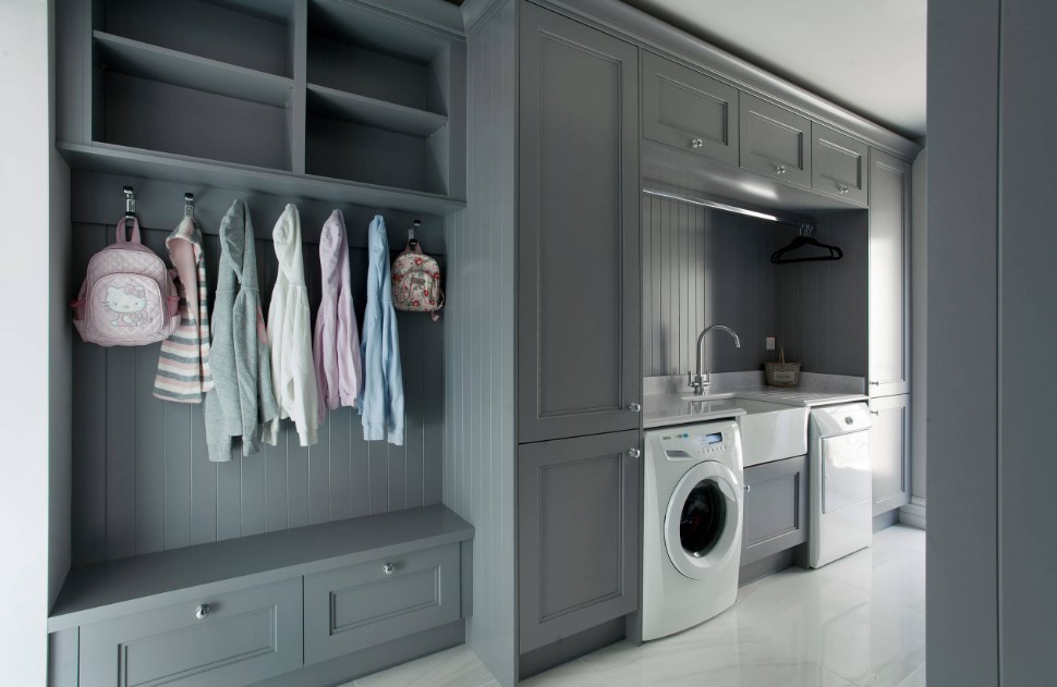 Шкафы-купе благодаря своей вместительности, возможности быть изготовленными в разных размерах и формах, вполне успешно могут стать и скрытым пристанищем стиральной машины. Наиболее приемлемым для реализации этого варианта будет шкаф-купе в прихожей или коридоре. При заказе шкафа-купе, наряду с другими системами хранения, нужно предварительно запланировать место расположения стиралки, полки для хранения корзины с бельем и средств для стирки. Есть важные нюансы при установке машинки в шкаф-купе: обязательная гидроизоляция дна шкафа-купе, подготовка электропроводки квалифицированным электриком.