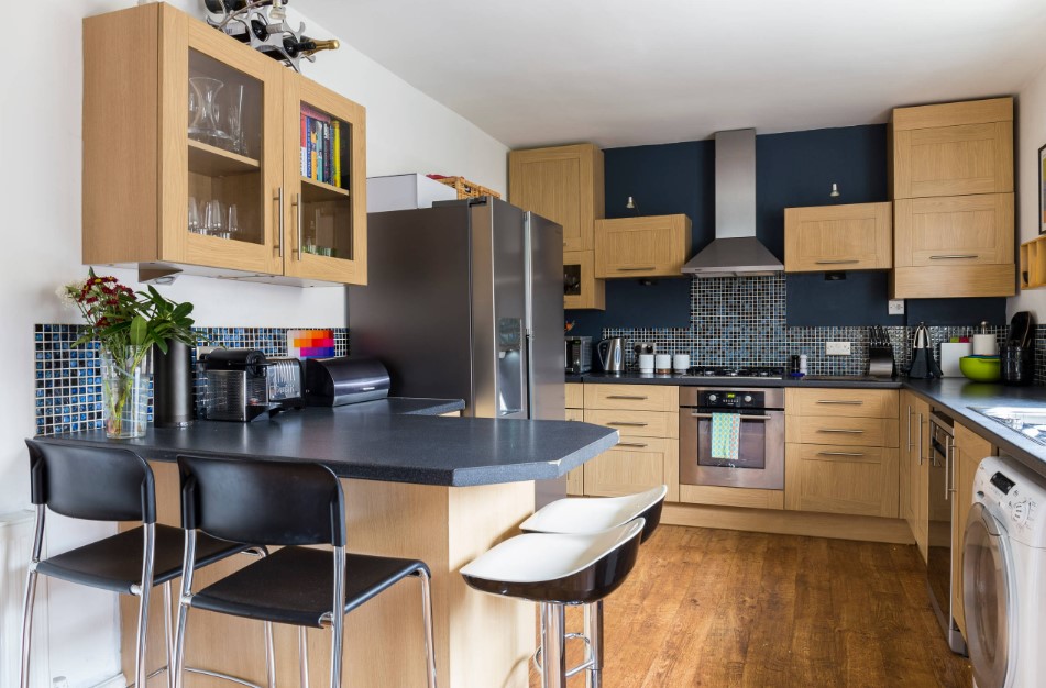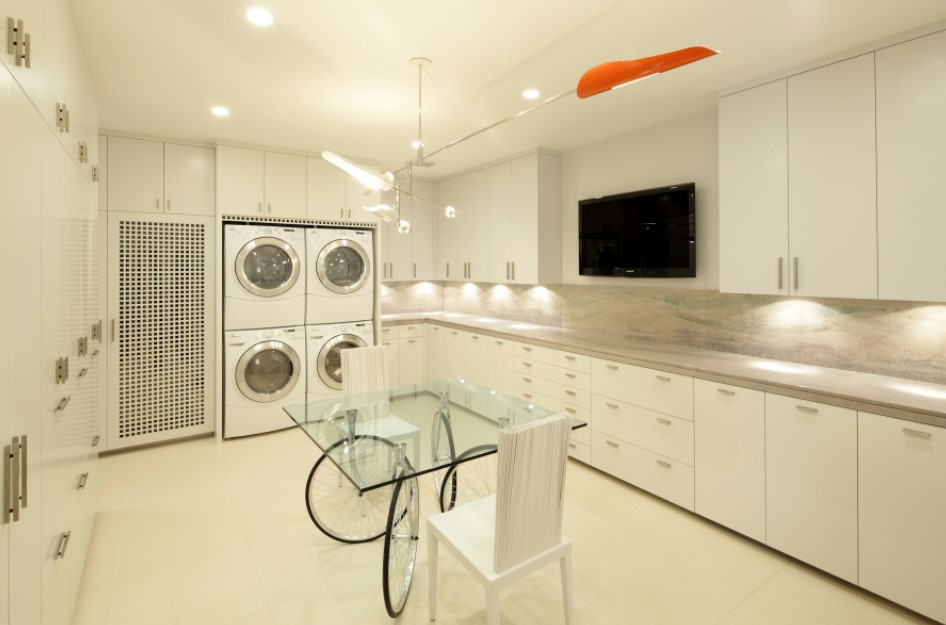 Такое решение подойдет для кухни, так как именно там сосредоточено максимальное количество другой бытовой техники: посудомоечная машина, духовые шкафы, микроволновая печь, холодильник и другие. Очень часто оснащают своеобразную функциональную зону с бытовой техникой, максимально компактно и эргономично располагая все бытовые приборы. В этом случае квалифицированно должен быть решен вопрос с электропитанием, так как нагрузка будет значительной.