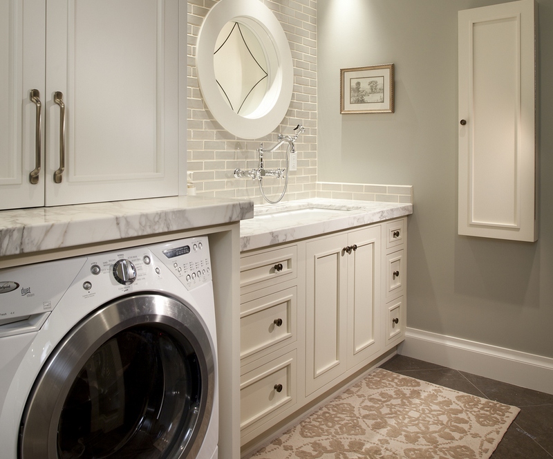 Стиральную машину рекомендуется выбирать в цвет мебели или нейтрального белого цвета, что позволит сделать ее присутствие в интерьере максимально незаметной. Если площадь квартиры или дома позволяет лучше оборудовать специальное отдельное место для стиралки. Также удачно спрятать стиральную машину можно, заказав специальный шкаф с нишей и полкой для хранения средств для стирки и ухода за машинкой. Отличным решением станет приобретение встраиваемой стиральной машины, которую можно будет компактно разместить в мебели или нише. Далее рассмотрим конкретные варианты, как спрятать стиральную машину в жилом помещении.