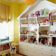 Хорошенько продумайте оптимальное количество полочек и стеллажей, которое потребуется для хранения детских игрушек. Учтите, что маленькие непоседы накапливают очень много всяких безделушек. Но так или иначе ребенок с самого детства должен быть приучен к чистоте и порядку. Важно, чтобы полки были расположены подальше от кроватки, ведь случайно задетые вещи в лучшем случае могут оказаться на полу, в худшем – травмировать малыша.
