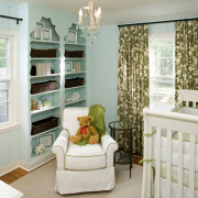 Расположив кроватку недалеко от входа, вы более свободно будете чувствовать себя в детской комнате. А ночью, когда проснетесь, чтобы утешить малыша, сможете легко подойти к кроватке без каких-либо препятствий. Не ставьте ее возле окна – там, где могут быть сквозняки. Также очень нежелательно, чтобы рядом с кроваткой были занавески, шторки и другие вещи, в которых ребенок легко может запутаться. Отличная идея – поставить рядом комфортное кресло-качалку для приятного времяпровождения за чтением книги или другим увлекательным занятием, пока малыш отдыхает.