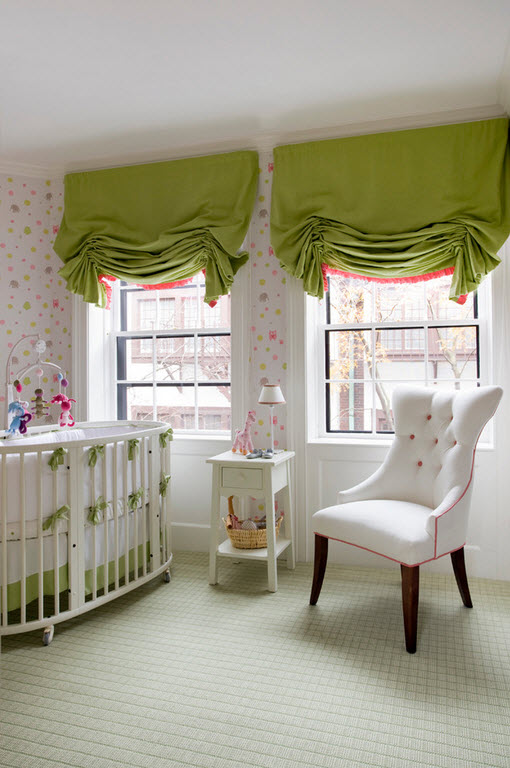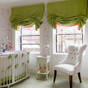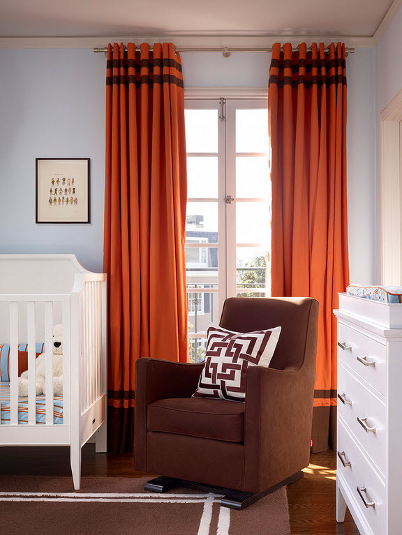 Позаботьтесь, чтобы в детской царил мягкий рассеянный свет. Контрастные плотные шторы прекрасно защитят ребенка от ярких солнечных лучей, тем более во время дневного сна.