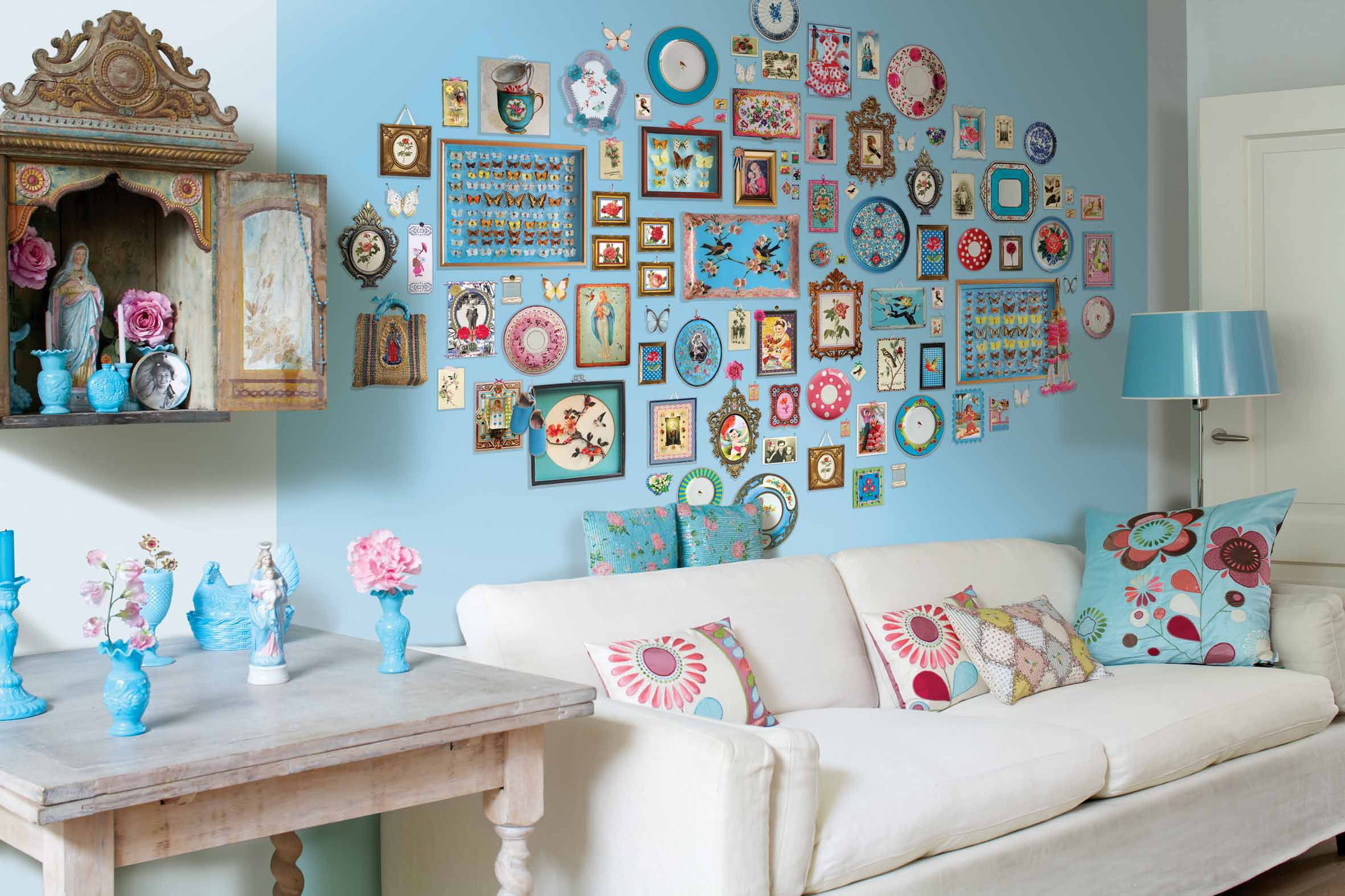 В случае возникновения желания украсить стены уже готовыми картинами, их можно прикрепить на бельевую верёвку либо рейлинги.