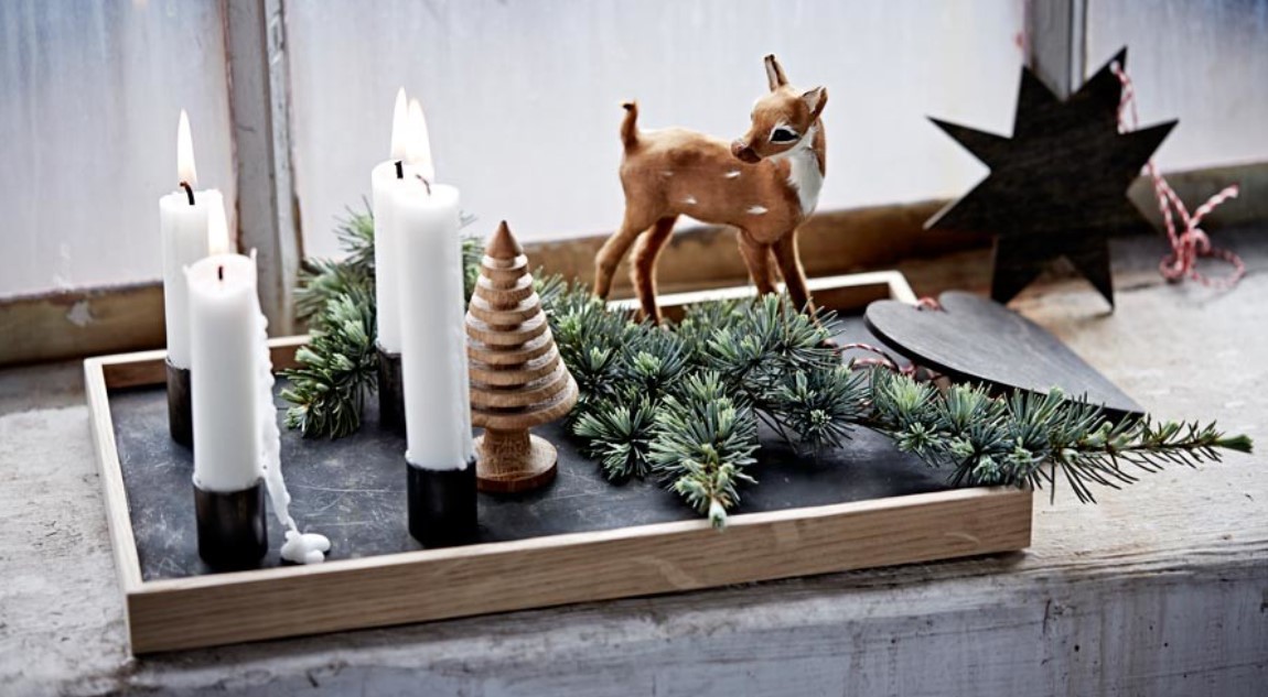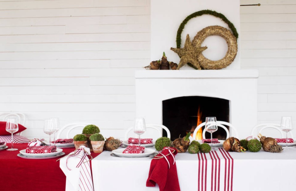 Не менее популярным декором можно назвать новогодние композиции из еловых веток, фруктов, шаров, палочек корицы, шаров, забавных фигурок снеговиков либо тотемных животных.