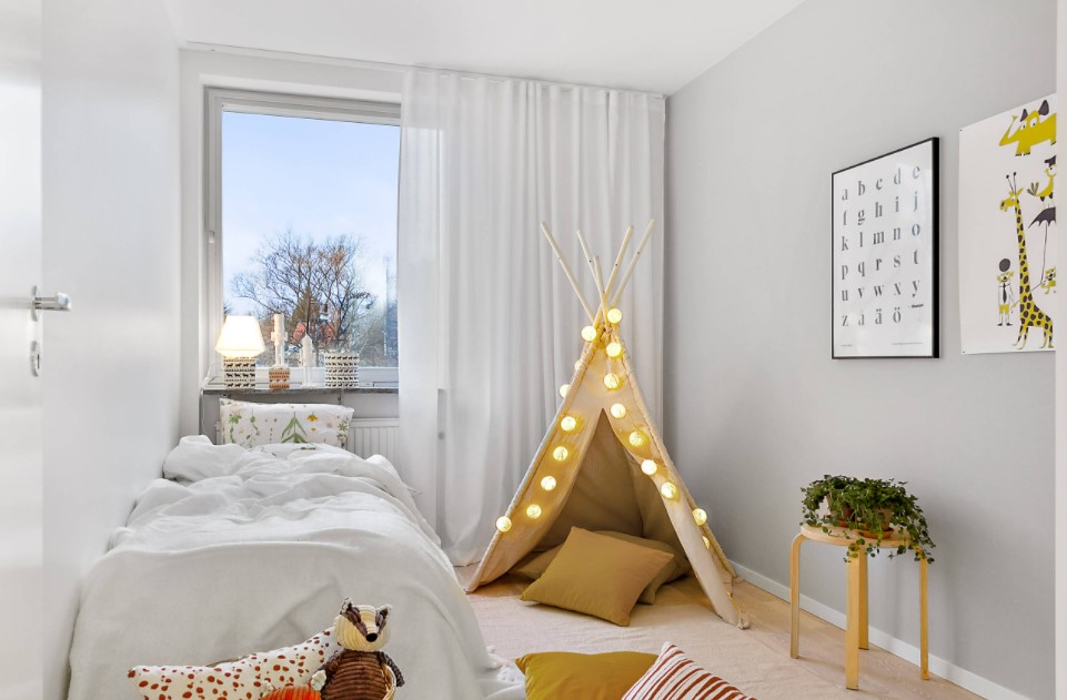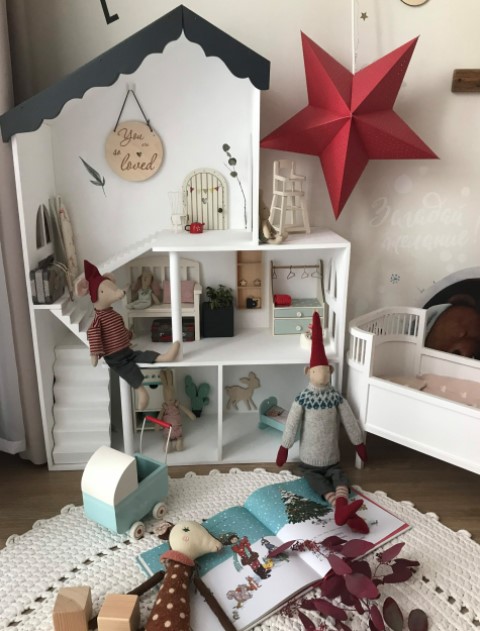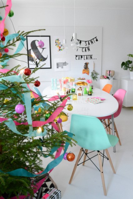 Не для кого не является секретом то, что дети, в отличие от взрослых, верят в чудеса и очень любят принимать участие во всех праздничных приготовлениях. Поэтому во многих семьях существует традиция отдельно украшать детскую комнату в преддверии праздника. При этом под подобными действиями не всегда подразумевается установка в детской полноценной ёлки. Во-первых, для этого необходимо наличие пространства. А во-вторых, новогодняя красавица может попросту мешать активным играм. Поэтому делаем акцент на другом декоре. Это может быть гирлянда либо дождик, новогоднее панно из бумаги на окнах с силуэтом Деда Мороза либо красивые яркие занавески. Можно также прикрепить на стену Рождественский носок, где ребёнок каждое утро будет находить сладости, детские рисунки и прочие поделки.