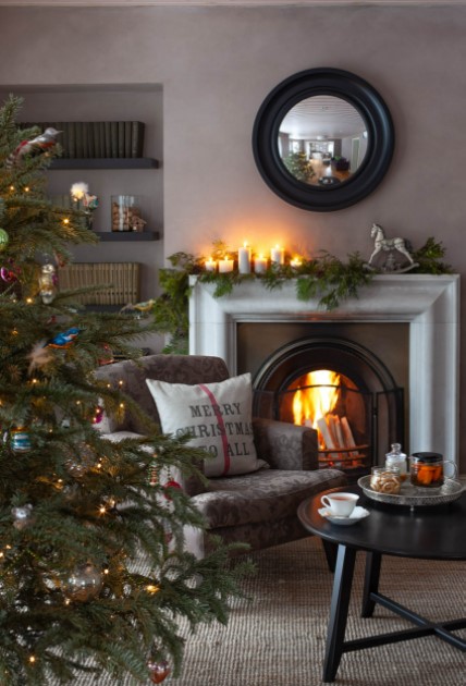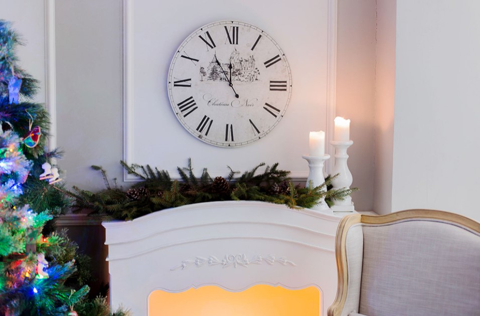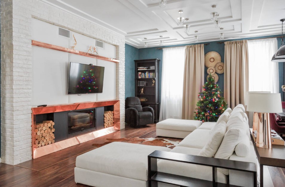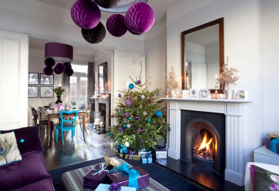 Сегодня в моде искусственные камины и фонарики, хаотично развешенные по комнате звёзды, снежинки и колокольчики.