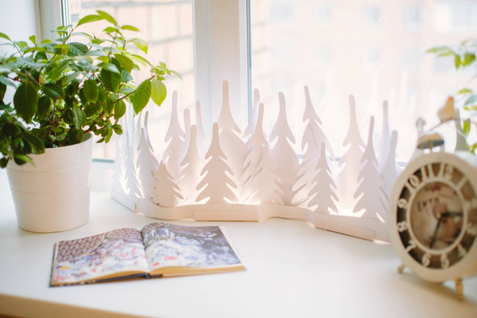 Если вы любите рукодельничать, всегда можно проявить фантазию и украсить комнату к празднованию Нового года своими руками. Подобные занятия позволят вам немного отдохнуть от суеты, а изготовленный собственноручно декор всегда смотрится по-особенному. Среди актуальных идей снежинки разного уровня сложности, вырезанные из бумаги и самодельные гирлянды, ёлочки из картонного конуса и мишуры, венки из проволоки, обёрнутой дождиком, подсвечники из перевёрнутых бокалов и стаканов. Очень красиво смотрятся шары из ниток и ёлочные украшения из шишек, орехов, конфет либо домашнего печенья.
