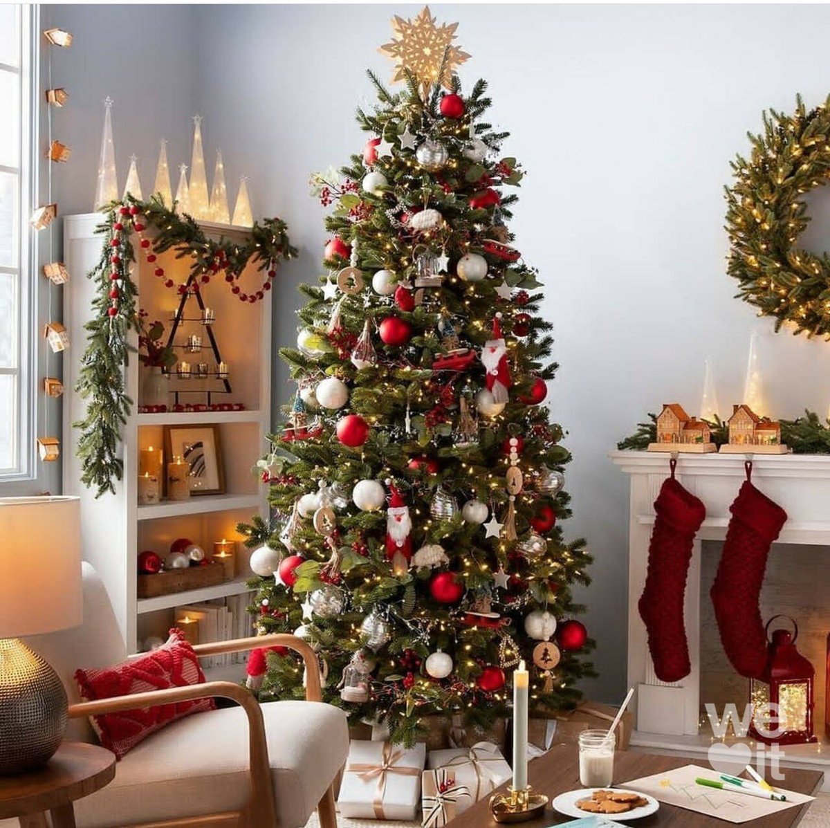 Традиционными цветами праздника считаются красный, зеленый и блестящие вариации золота, а также серебра. Однако цвета должны совпадать по глубине и насыщенности: яркие с яркими, пастельные с нюдовыми.