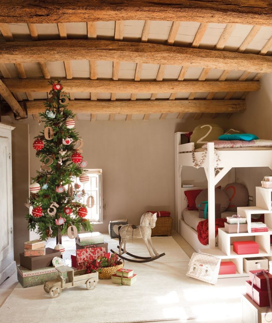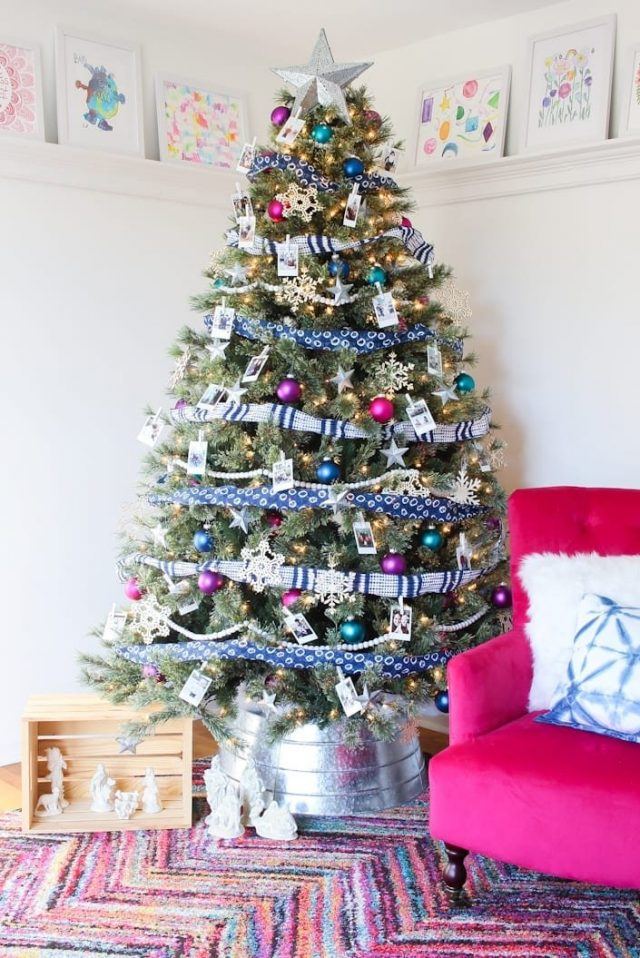 Данный стиль подразумевает минимальное количество игрушек и украшение елки бумажными лентами с пожеланиями и поздравлениями. Также на дереве должен присутствовать символ года, звезды и банты, семейные фото и стеклянные прозрачные шарики. Но следует учитывать, что спираль из бумажных лент не подойдет елочкам маленького размера.