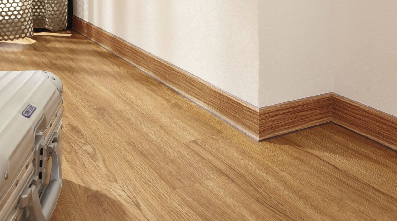 - Размер оставленного зазора. Если строителями был оставлен зазор между напольным покрытием и стеной около 15 мм и толщина плинтуса варьируется около 13-14 мм, например, то ее будет недостаточно с учетом расширения и сжатия напольного материала до нескольких миллиметров.