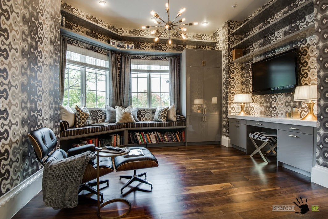 Ни для кого не секрет, что от принта обоев зависит чуть ли не половина образа, который складывается при взгляде на помещение. Яркий, насыщенный рисунок отделки стен может стать ключевым в оформлении всей комнаты. Есть негласное правило – если обои пестрые, то обивка мебели и декор окон должен быть однотонным. Но правила существуют для того, чтобы их нарушать. Опытные дизайнеры способны создать нетривиальный образ семейной комнаты, опровергая все каноны и правила, почему бы не воспользоваться их идеями для вдохновения?