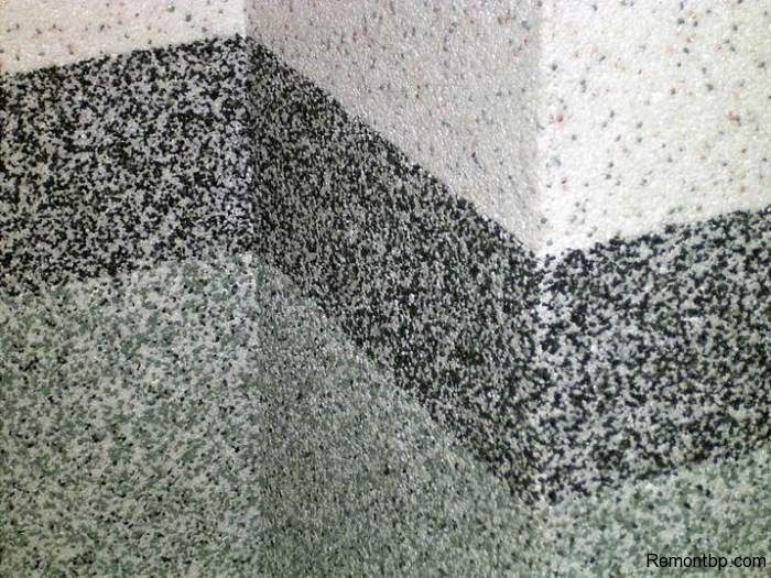 Каменная крошка – очень интересный и необычный вариант декора помещения. Внешне материал состоит из мелких камней, которые разбавлены клеящими и связующими веществами. Материал встречается самых разных цветов и оттенков, а выпускается в металлических или пластмассовых емкостях по 15-20 кг. Крошка бывает гранитная, мраморная и кварцевая . Мраморная, кстати, считается наиболее красивой и, соответственно, самой популярной. С другими видами штукатурки вы можете ознакомится здесь.