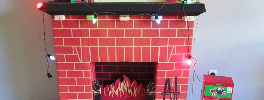 Опускаем гирлянду, добавляем дополнительный декор и устанавливаем камин в подходящее место.