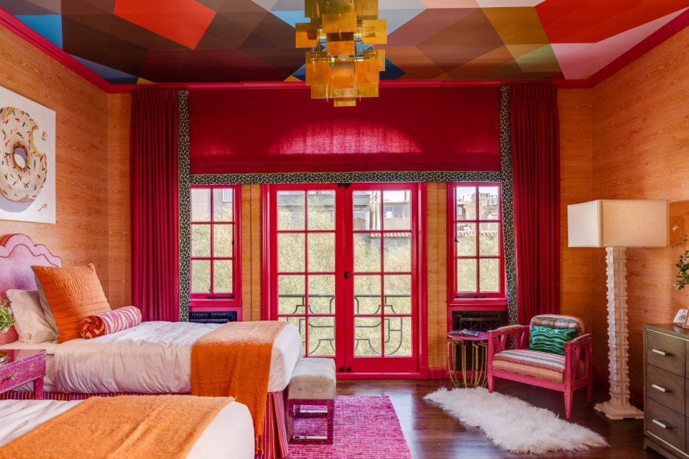 Отдельная и очень эффектная история – обои с контрастными узорами, орнаментами, рисунками. Такие обои нужно аккуратно добавлять в интерьер, так как они достаточно насыщенные, есть риск перегрузить пространство. Поэтому обоями с контрастным рисунком оклеиваем одну стену, чаще всего, над кроватью, а остальные стены – компаньонами светлых оттенков цветов, которые присутствуют в дизайне контрастных обоев.