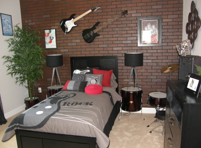 В списке наиболее распространённых увлечений для мальчика подростка лидирующие позиции занимают спорт, музыка, транспортные средства и компьютеры, что следует обязательно учесть при обустройстве комнаты. Кроме того, парни предпочитают практичную мебель, совсем не любят убираться и практически постоянно забывают поливать цветы. Поэтому отдайте предпочтение вместительным системам хранения и минимальному количеству декоративных предметов.