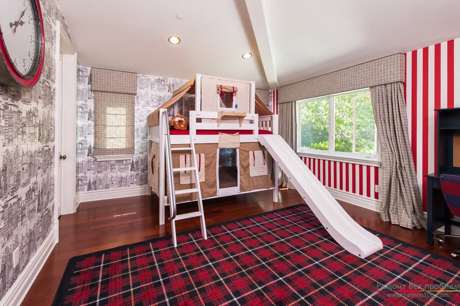 Пол в детской комнате ни в коем случае не должен быть скользким. Покрытие лучше выбрать антискользящее либо постелите ковролин на пол.
