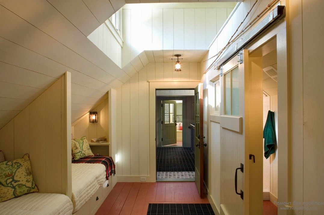 А для тех, у кого просторное жилище с высокими потолками, вариантов двухъярусных кроваток существует целое множество. Кровати, например, могут быть с подиумом. Это происходит за счет поднятия уровня пола при помощи специальной конструкции. Таким образом, в отдельной части комнаты образуется возвышение, которое и именуется у дизайнеров, как подиум. Его высота может быть разной, поэтому подиум может по-разному использоваться. К примеру, если высота составляет 30 см, подиум прекрасно послужит в качестве кровати, а место под ней можно отлично использовать для хранения постельного белья, подушек и одеял. В принципе, в ящике можно хранить вообще все, что угодно, вплоть до игрушек или учебников и книг. Единственное, что еще следует приобрести для кровати-подиума – это ортопедический матрас, который сделает кровать гораздо удобнее.