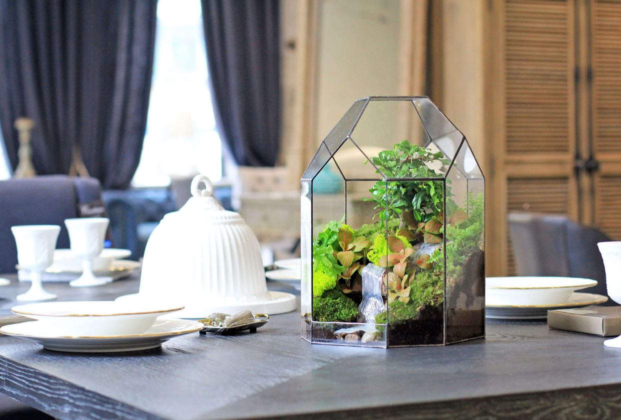 Нет времени для составления зеленого уголка? Можно просто сделать флорариум. Это прозрачный сосуд с влаголюбивыми растениями. Его функциональность направлена на действие так называемого парника. Во флорариуме создается микроклимат, благоприятный для тропических растений, отсутствует сквозняк, что очень важно для растений.