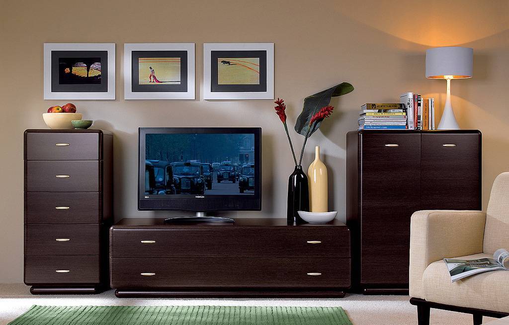 Конечно, следует помнить, что наилучший эффект аранжировки будет получен при сочетании комода для гостиной с другой мебелью в том же стиле.