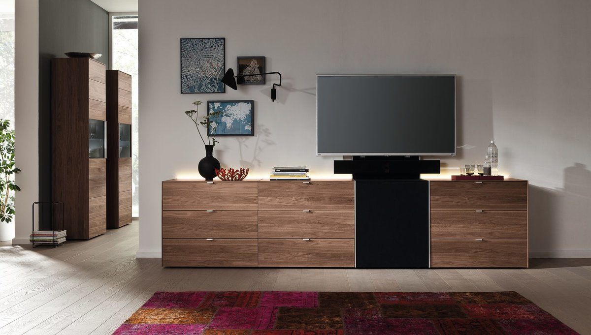 Конечно, комнатные комоды также могут быть использованы для других целей, чем просто для хранения повседневных предметов. На верхней стойке можно разместить декоративные безделушки или обрамленные фотографии — благодаря таким дополнениям гостиная приобретет индивидуальный характер. Внутри застекленных, освещенных полок можно выставить красивые фарфоровые или туристические сувениры. Есть действительно много возможностей для аранжировки, которые можно увидеть в представленной фото-галерее.