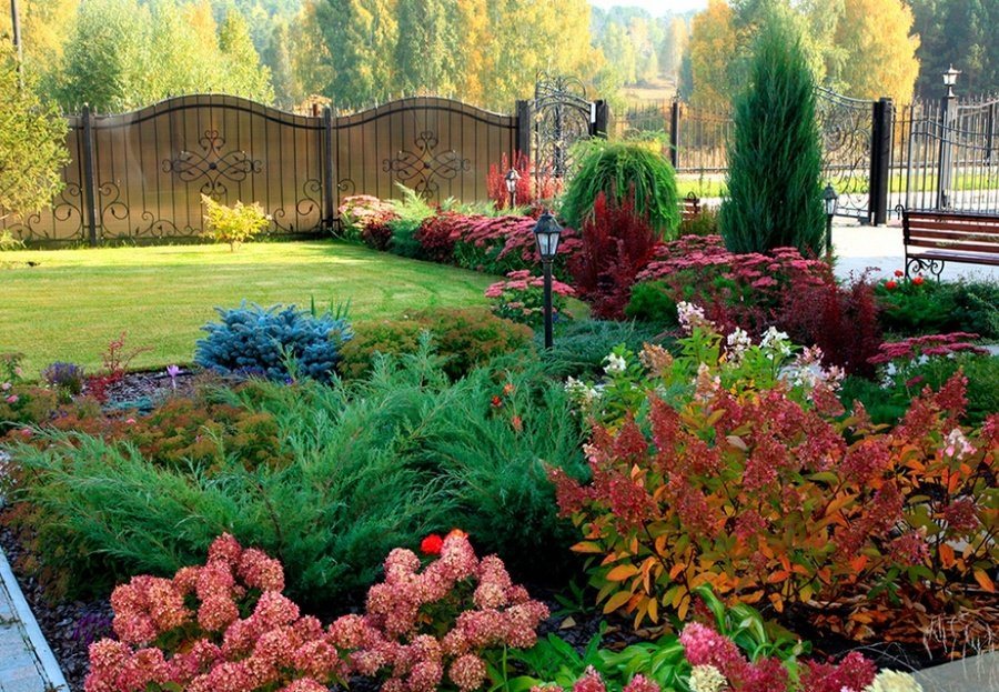 Стоит обратить внимание и на сочетания цветов в саду: их конечно может быть больше трех, в отличие от домашнего интерьера, но они не должны быть непродуманными и абсолютно произвольными.