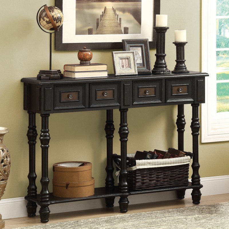 Наличие всевозможных ящиков в том или ином предмете меблировки означает, что главное предназначение данного аксессуара заключается в хранении различных вещей. И консоль в этом случае также не является исключением. Такие конструкции, как правило, устанавливаются на пол и являются прекрасной альтернативой габаритным комодам. В просторных прихожих можно устанавливать вместительную консоль вдоль одной из стен. Для помещений с небольшой площадью следует отдать предпочтение более миниатюрным конструкциям.