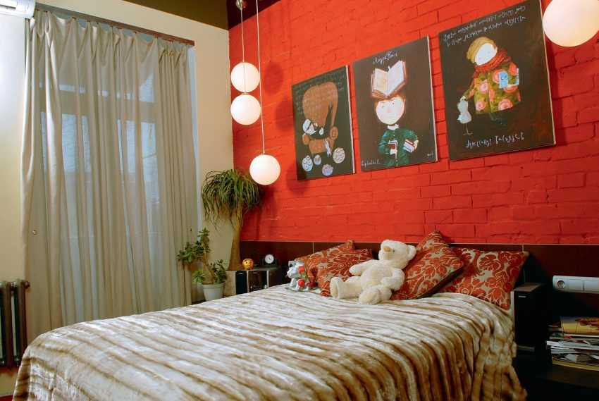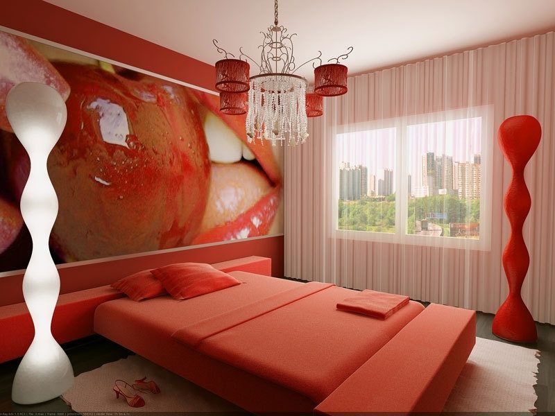 Изысканный и роскошный темно-коралловый оттенок станет очень удачным вариантом для спальной комнаты.