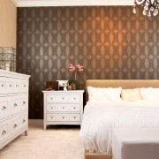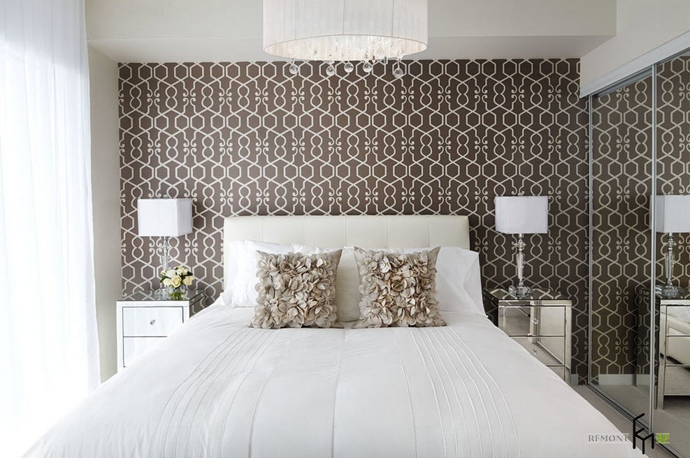 В таком интерьер коричневые обои станут отличным фоном для белоснежной мебели. Или же выступать лишь в качестве акцентов. К примеру, в спальне со светлой мебелью, отделкой стен, потолка и пола гармонично впишутся обои шоколадного цвета с ненавязчивым светлым узором.