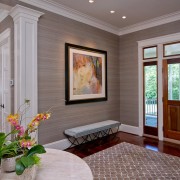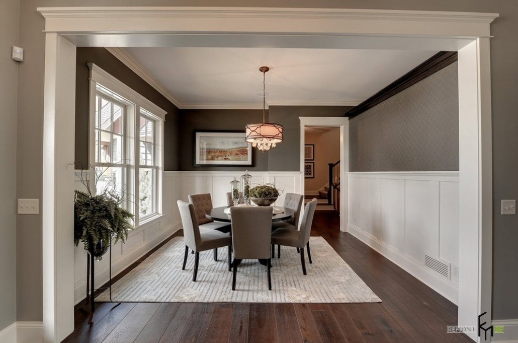 Оригинально бело-коричневое сочетание цветов смотрится и при оформлении панелей. Причем темный оттенок можно использовать и на основной стене и в качестве самих панелей. И в том и в другом случае можно подобрать обои с растительными или геометрическими узорами или текстурированные под декоративную штукатурку. В интерьере с темно-коричневыми стенами и белыми панелями к месту будут такие же белоснежные рамы на окнах, двери и потолок, а вот пол лучше всего также сделать темным.