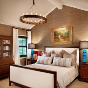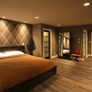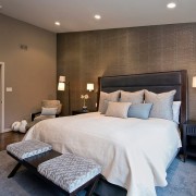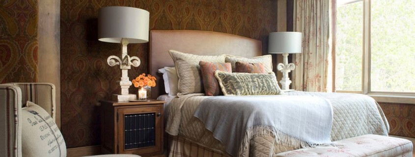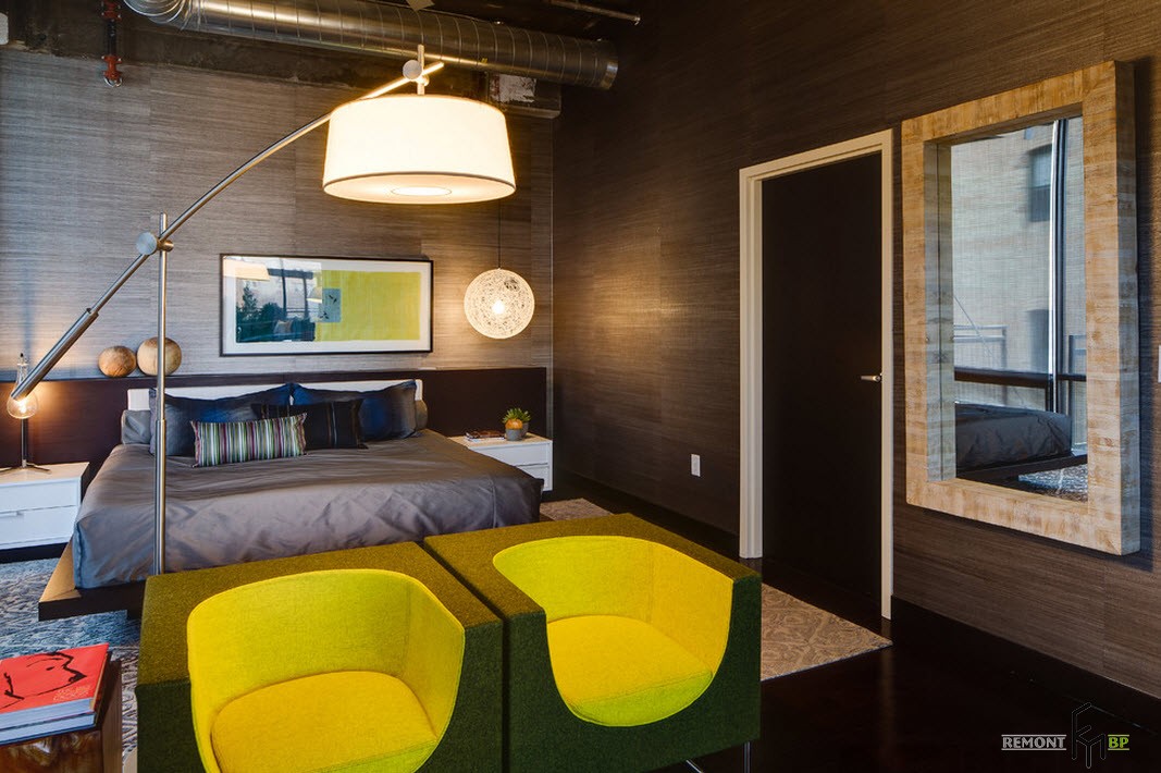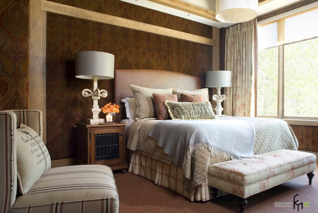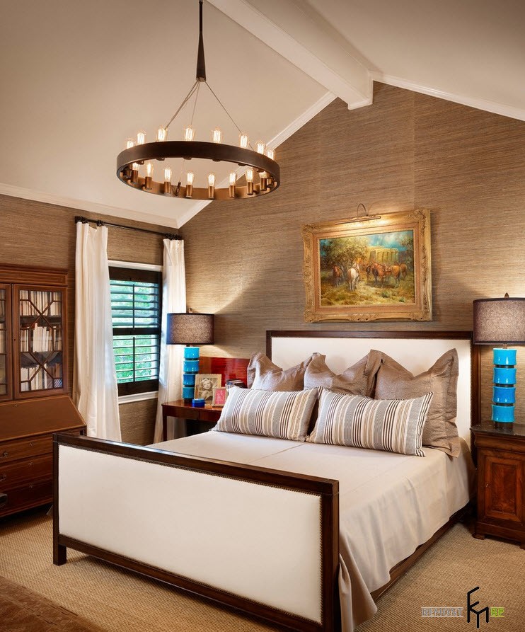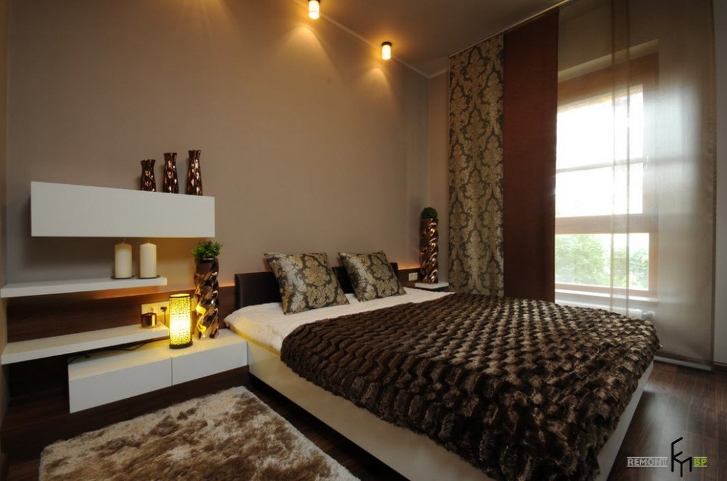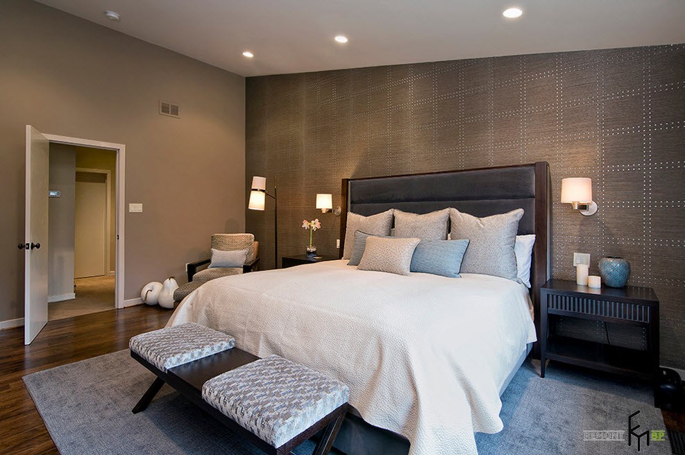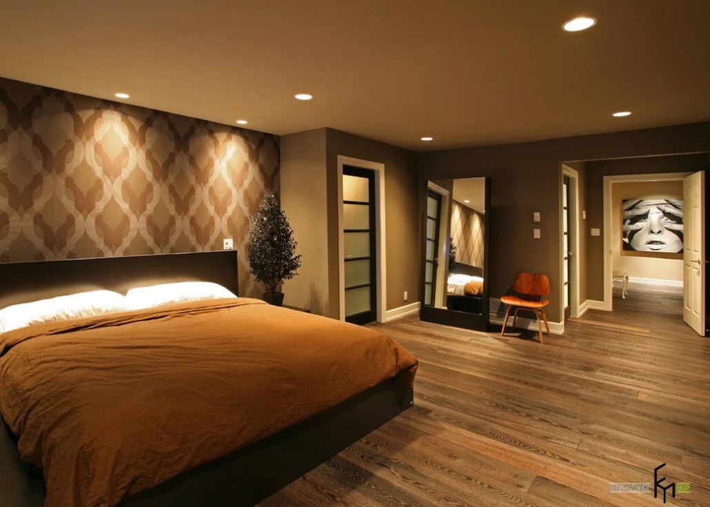 А вот в спальне с коричневыми обоями отлично впишутся оранжевые декоративные подушки или покрывало.