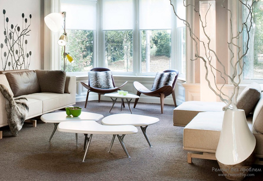 Необычность облика этого ковролина обеспечивает использование разнообразных приемов: