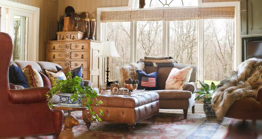 При этом для этих целей используется исключительно добротная материя (натуральная патинированная или вощеная кожа со специальной пропиткой, защищающей ее от влаги). Приемы применения кожи различные: предметы могут быть с полным кожаным облеганием, а могут декорироваться только отдельные их участки. Вообще, кожа отлично сочетается с различными материалами, например, такими, как натуральное дерево, стекло и хромированный металл.