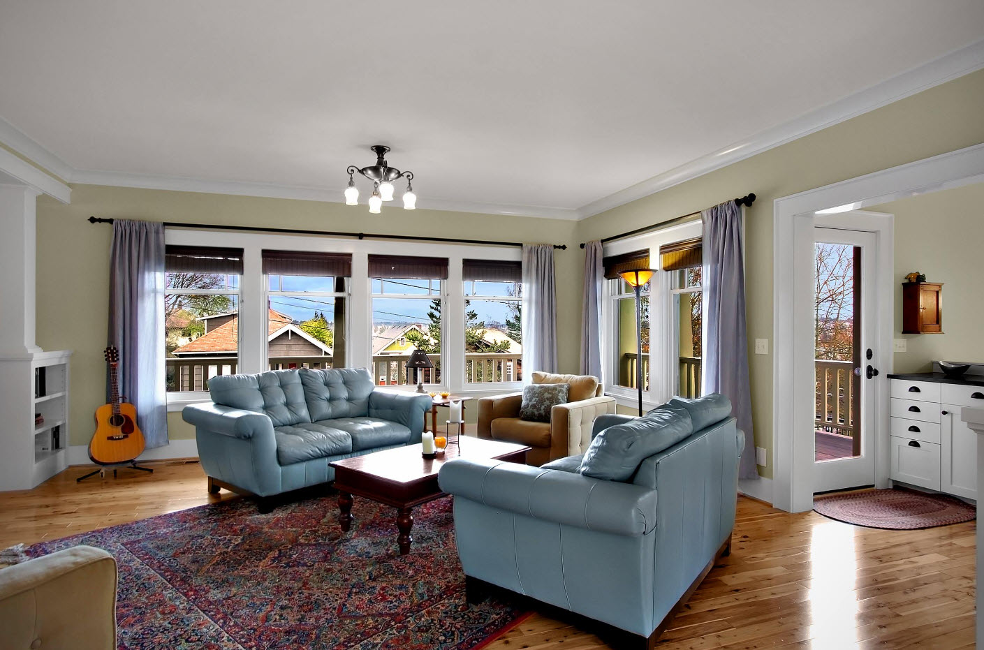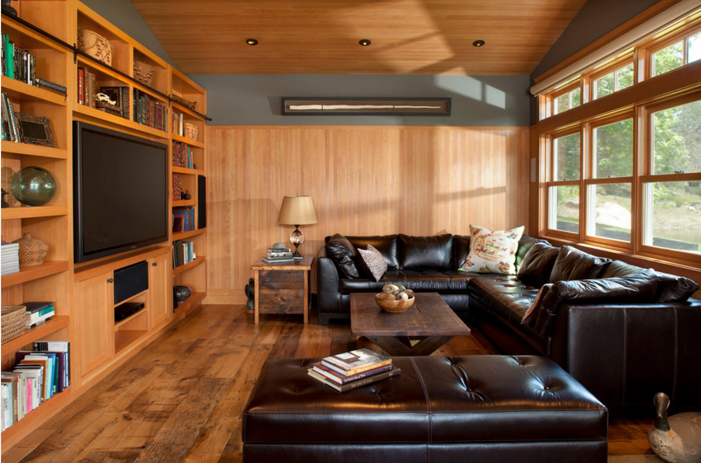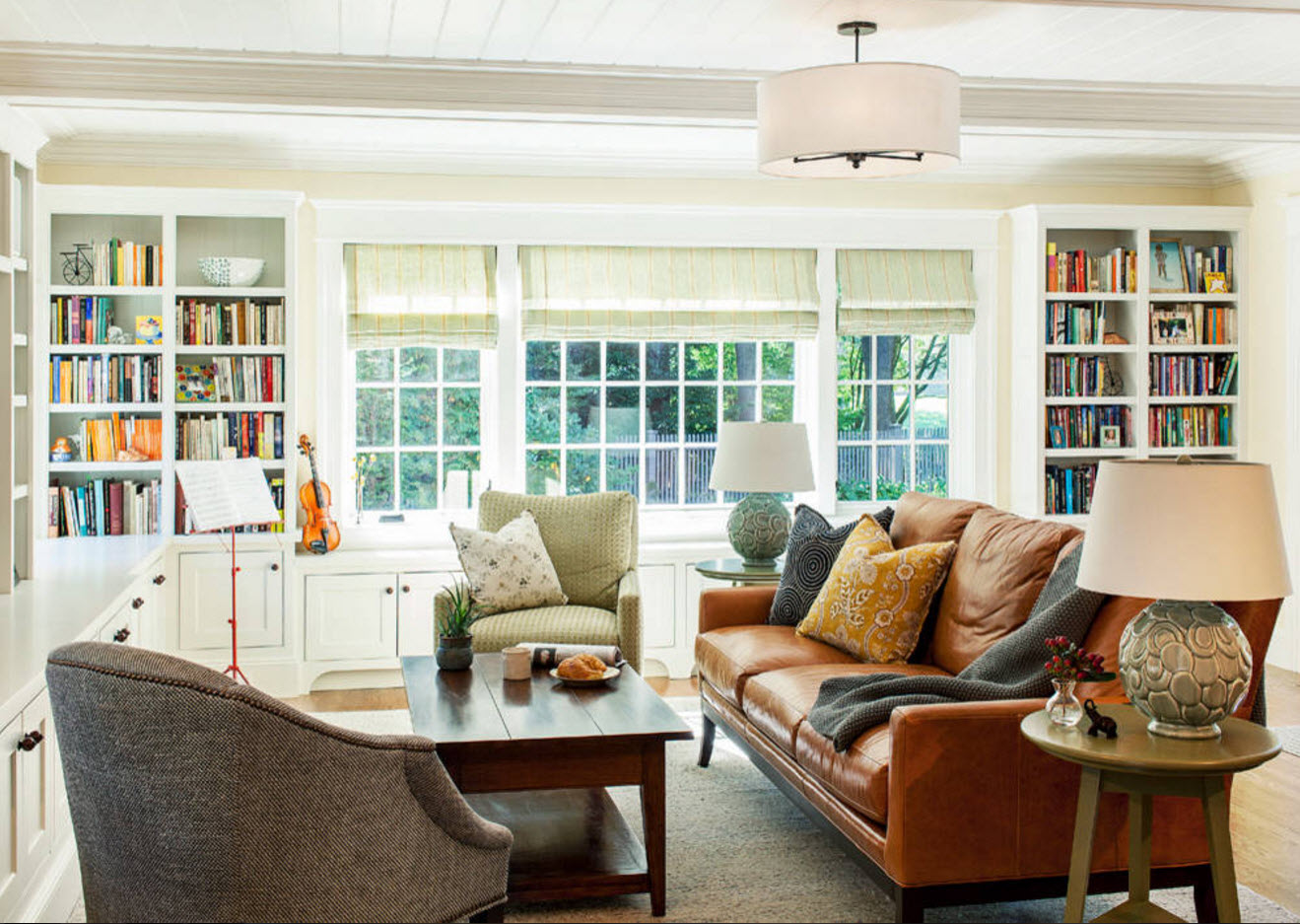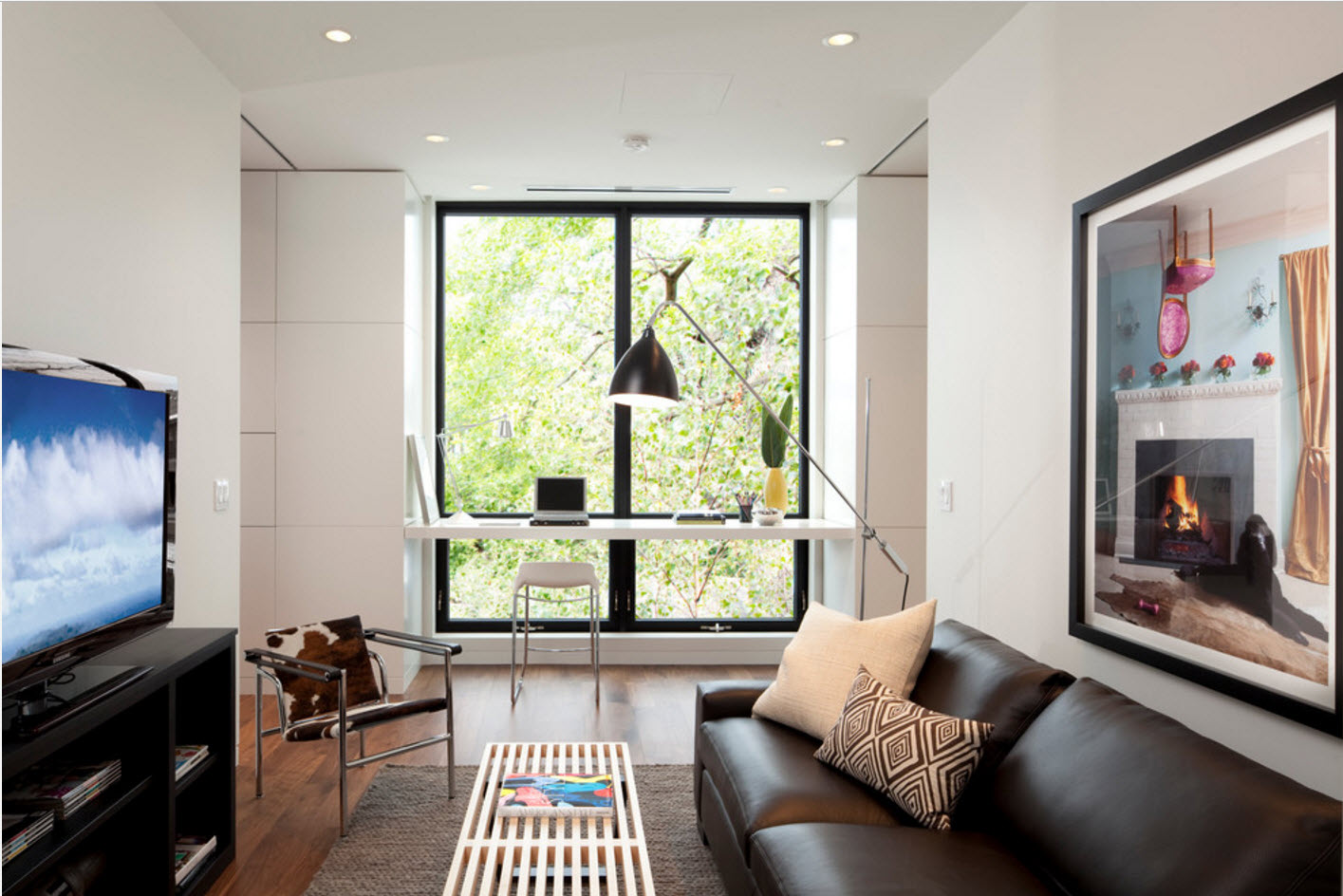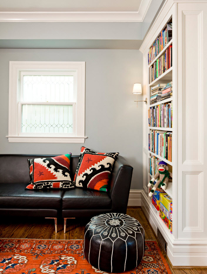 Диван у окна – отличная и наиболее очевидная возможность использования этого полезного пространства комнаты. Ведь только невысокие системы хранения или диваны с небольшой спинкой можно установить возле окна без потери уровня естественной освещенности. Но необходимо быть внимательным в уровне близости кожаной обивки дивана от радиаторов отопления (в большинстве квартир и частных домов нашей страны они располагаются именно под подоконниками).