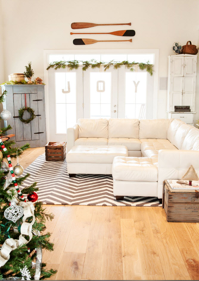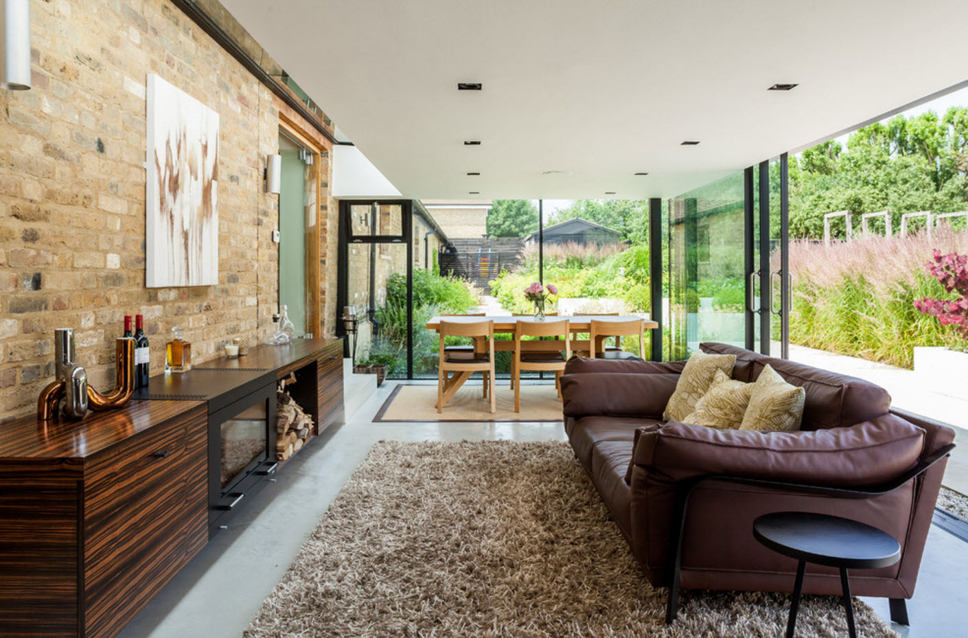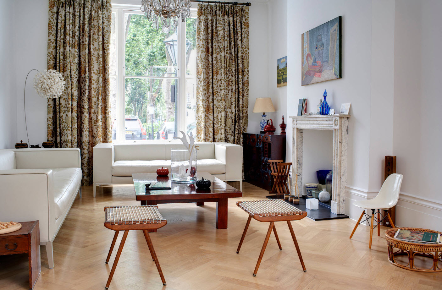 В просторном помещении (или совмещенном с кухней и столовой пространстве) диваны можно установить угловым способом, очертив тем самым границы гостиного сегмента.