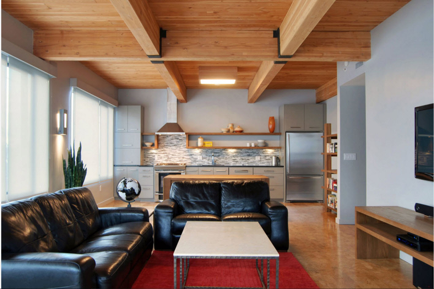 Угловой диван совершенно очевидно целесообразнее устанавливать в одном из углов помещения. Все зависит от расположения оконных проемов, наличия (или отсутствия) камина и TV-зоны. Но это принцип применим для небольших комнат, в которых располагается только сегмент гостиной. В квартирах-студиях, где несколько функциональных сегментов объединены в одном пространстве, угловые конструкции логичнее всего использовать для зонирования помещения.