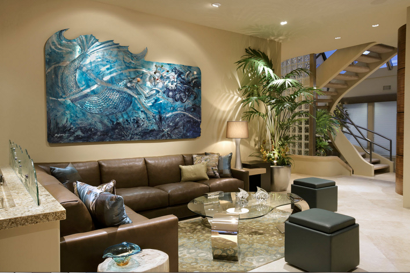 - кожаный диван может органично вписаться в любое стилистическое оформление интерьера, нужно только правильно выбрать модель, размер и цвет меблировки.
